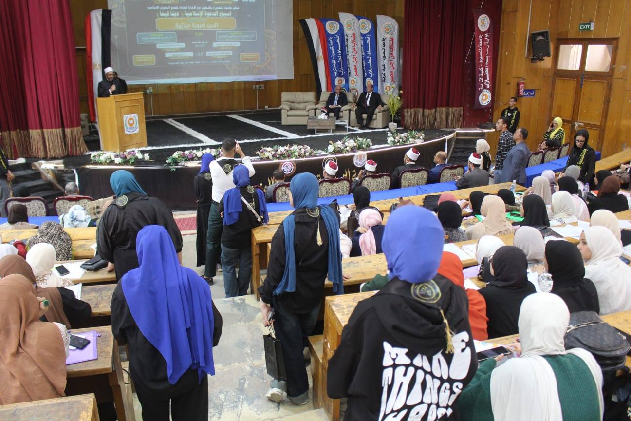 وأكد الدكتور علي عبد ربه أن الأسبوع الدعوي يمثل منصة فاعلة لطلاب الجامعة لتعميق فهمهم الصحيح لقضايا الدين وربطها بواقعهم المعاصر، في ظل التحديات الفكرية والثقافية المتسارعة، موضحًا أن هذه الفعاليات تتيح للطلاب طرح تساؤلاتهم الفكرية ومناقشة مختلف القضايا في بيئة علمية رصينة ومنضبطة تستند إلى مرجعية الأزهر الشريف، بما يسهم في بناء وعي متوازن يجمع بين الأصالة والمعاصرة.